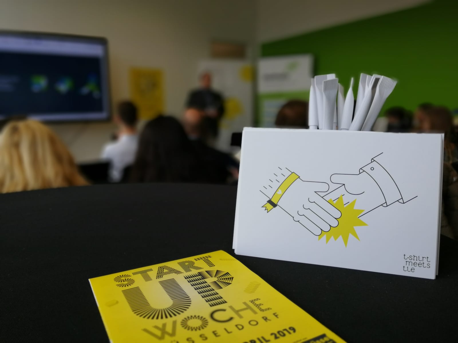 Am letzten Freitag startete die nun vierte Auflage der Düsseldorfer Start-Up Woche. Auf unserer Veranstaltung im STARTPLATZ stellten wir interessierten Startups und Kleinunternehmen unser Projekt „T-shirt meets Tie“ vor und beantworteten zusammen mit unseren Kooperationspartnern[1] von der IHK Düsseldorf und bereits aktiven Ausbildern Fragen rund um das Thema Ausbildung.